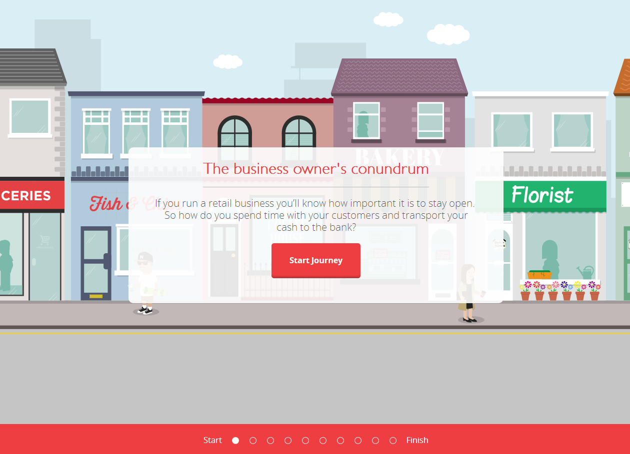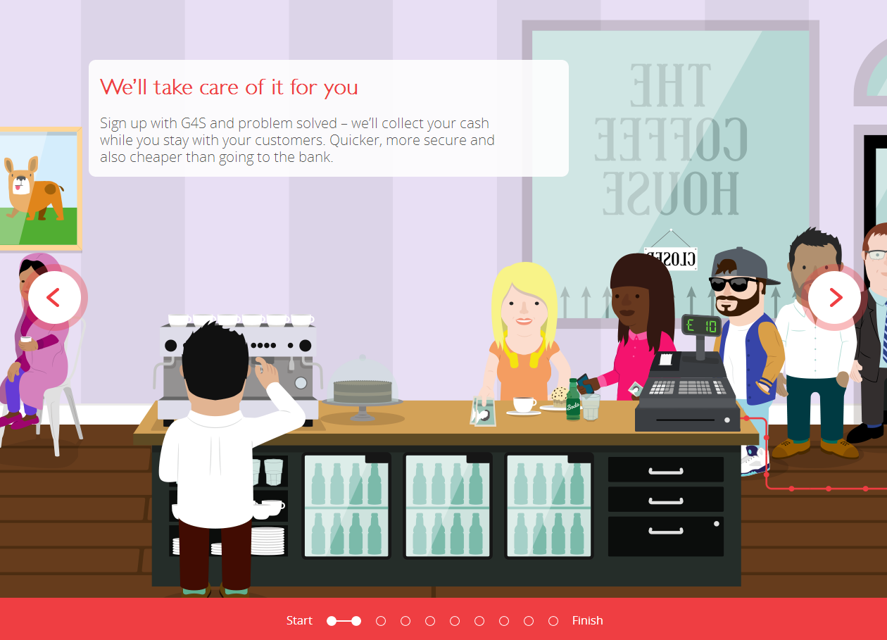 I worked with Skylark Creative to build a cross-device story-style animation in HTML5, to show how G4S's cash collection service represents good value for money for the small business.